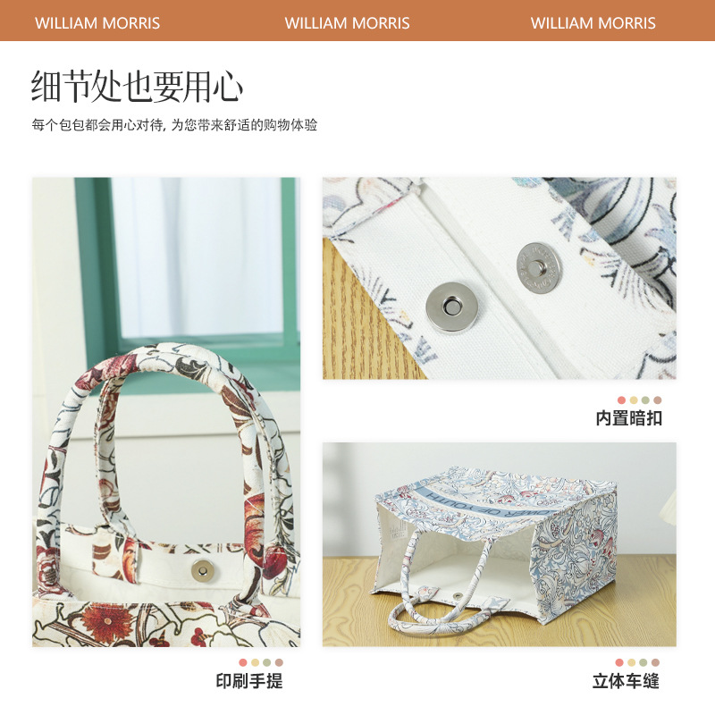 • WASHING NOTICE: cleaning of 100% cotton bags is not recommended. The washing shrinkage rate exceeds 10%. Should it be seriously dirty, it is recommended to wash it in cold water by hand. Hang dry is necessary before high- temperature ironing. Please notice that the fabric may not return to the original flatness. Flash drying and machine wash shall be prohibited.