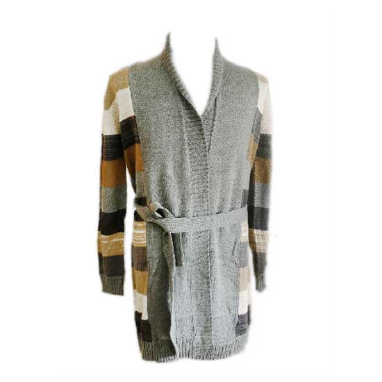 This women’s cardigan comes with a multi-stripe design in colors for an eye-catching look. It is made of 70% acrylic and 30% wool for a comfortable and warm touch. The matching belt is added to shape your slim figure.