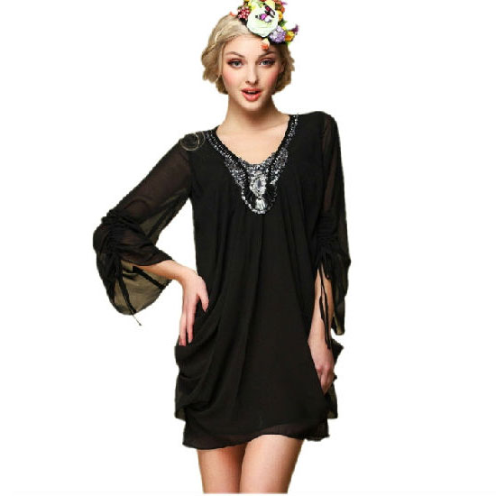 This is a women's chiffon sissy mini dress coming with an all-black finish. The custom fabric puff sleeves adds an adorable touch to the whole piece. Made from 100% cotton, this mini dress offers you a comfy wearing experience.