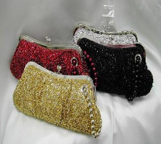 Fill party full of glitter by showcasing this evening clutch bag. It characterizes a heavily beaded design with various choices of metallic colors for your selections. The matched carrying strap is linked by round pearl-like beads for adding style.