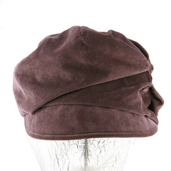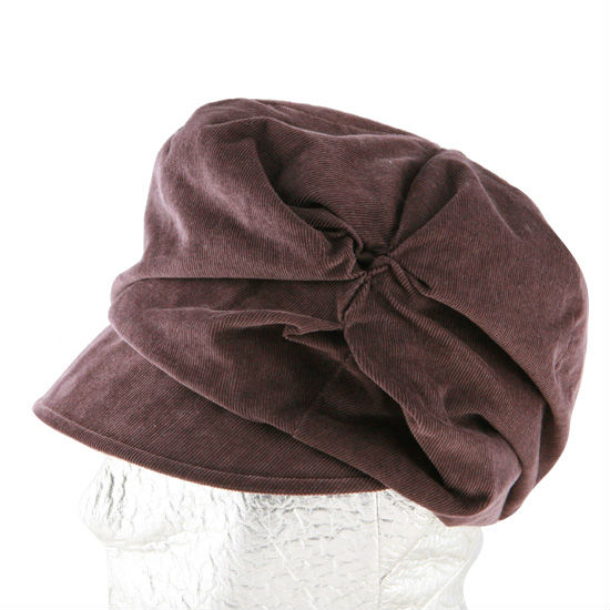A luxurious alternative for winter styling, this lady’s cap combines warmth and style in brown cotton corduroy fabric. Exquisitely ruched and twisted for an elegant silhouette, it gives volume and a modern twist to the army-style cap.