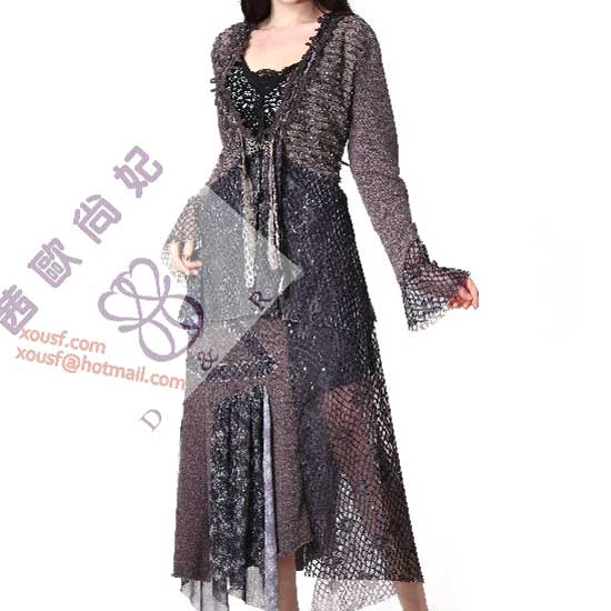 This is a women’s one-piece dress that comes with a novel and fashionable design. It has a low sweetheart neckline and a hole-patterned skirt. This unique dress is ideal for presenting a lady’s charming figure.