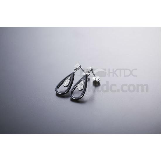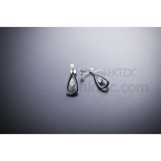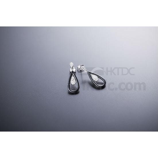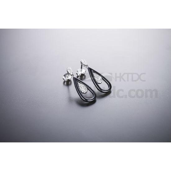 Product name: black drop ceramic silver earrings with white CZ, excellent quality in Rho plated