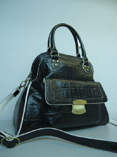 The structural aspiration of this women’s handbag is fashioned with crocodile patterned PU to impress eyes. Apart from the two tubular grab handles on top, it styles a detachable shoulder strap and a front flap pocket of metallic lock closure. The solid black demeanor further details white piping for a trendy look.
