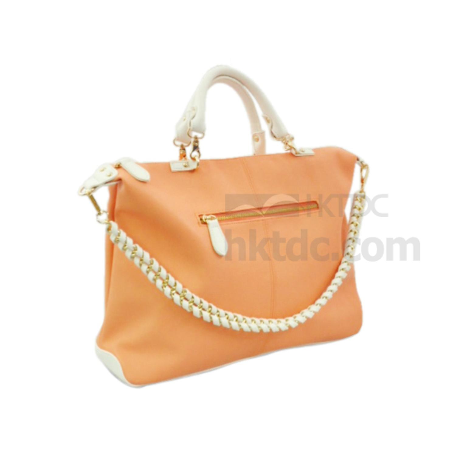The pale peach exterior of this women’s handbag embraces the refreshing spring cheer, bringing in a delightful touch to upgrade your everyday outfits. The durable construct further comprises double grab handles and a detachable chain shoulder strap with twisting delicacies for comfortable carry.