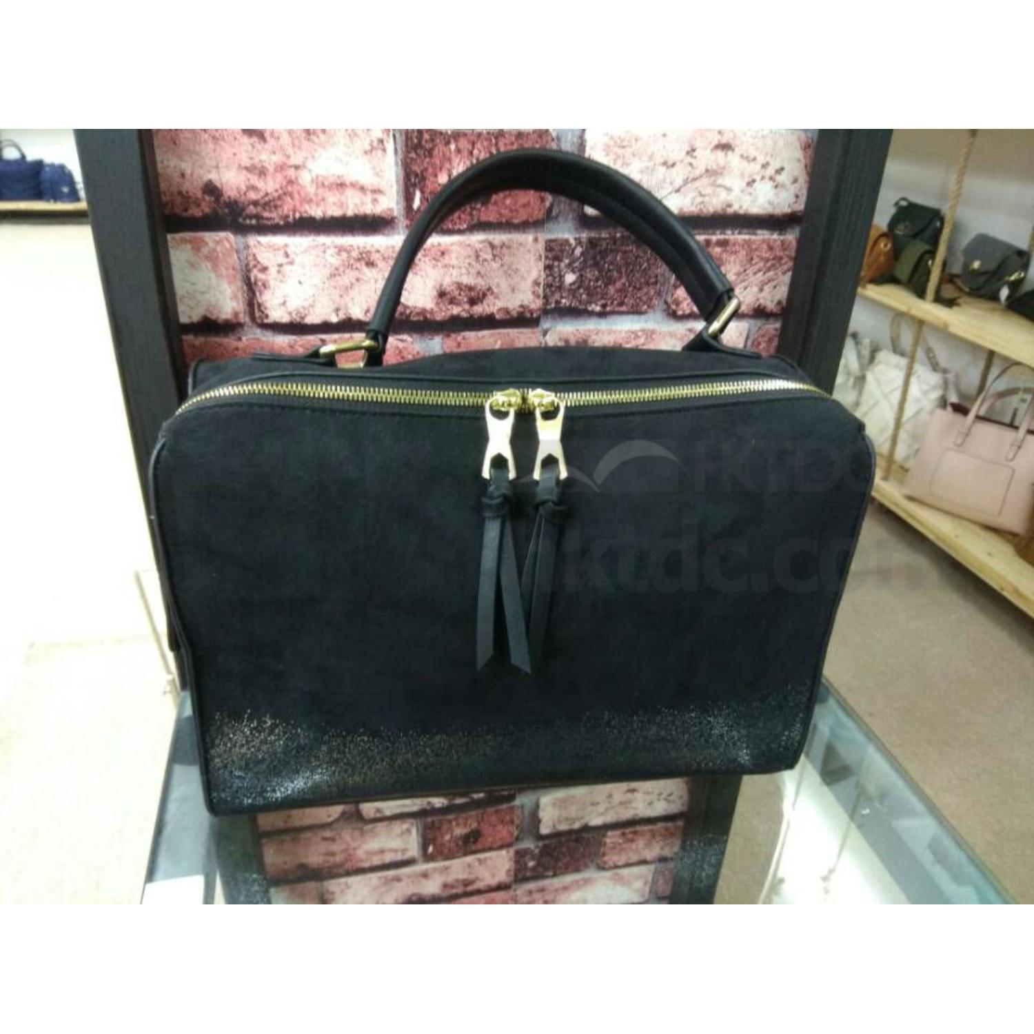 Play up your contemporary charm with this women’s handbag. Steeping in solid black of minimalist inspire, the four-side tailor details a top strap handle and a polished front zip closure for quick access. It accompanies your sophisticated disposition to make an ideal muse for everyday ensembles.