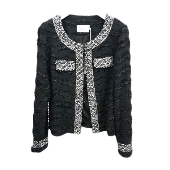 This is a women’s jacket that is made of top-quality material for a natural texture. It is fully accented with lace patterns for a decorative touch. This stylish jacket is finished with a classic round neckline, an opening front and long sleeves.