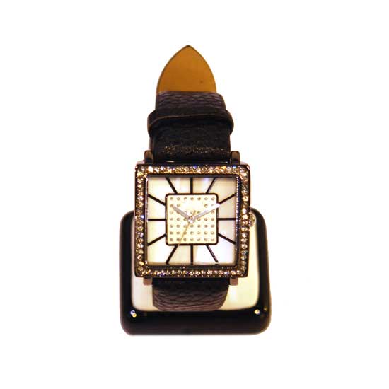 - Square case and dial with stones.