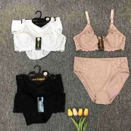 This collection features women's lace lingerie sets that combine elegance and comfort. It includes multiple styles: a white lace bra, a black lingerie set, and a beige lace bra-panty set. The intricate lace detailing adds a touch of sophistication, making these pieces suitable for both everyday wear and special occasions. The diverse designs cater to different preferences, ensuring there’s an option for every style. Accompanied by a bouquet of tulips in the display, these lingerie sets not only offer functionality but also embody a sense of refined fashion. Whether you’re looking for a classic white bra, a bold black set, or a delicate beige ensemble, this collection provides versatile choices that blend style and support.