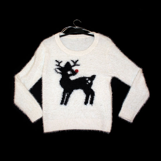 This is a women’s pullover with a trendy and stylish design. It comes in white with a black deer pattern for added uniqueness. The high-quality material promises a long service life.