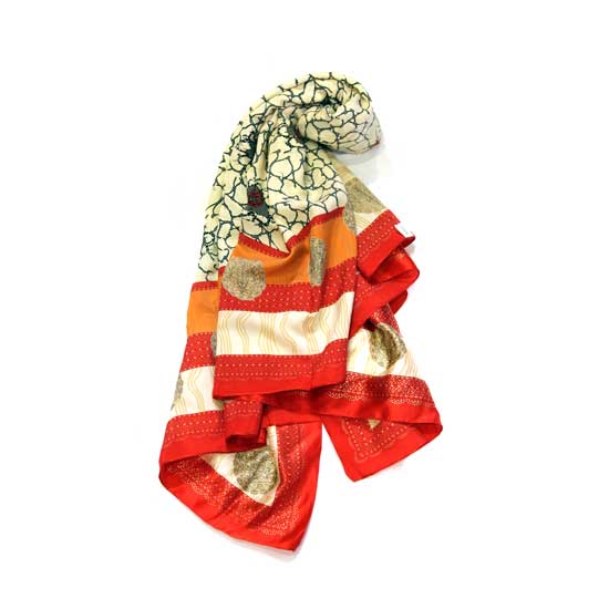 This showcased scarf is specially designed for women. This women’s scarf is made of pure silk for a comfortable touch. This silk scarf grabs your attention easily with its delicate prints in bright and vivid colors.