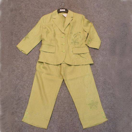 This stylish suit features a jacket and a pair of pants. The jacket has a notched collar and three-button closure. It has long-sleeve styling with two buttons on cuffs and two front welt pockets with flap closure. The pants fabric matches the suit jacket with buttons on the hem. This chic set is a smart and stylish addition to your wardrobe.