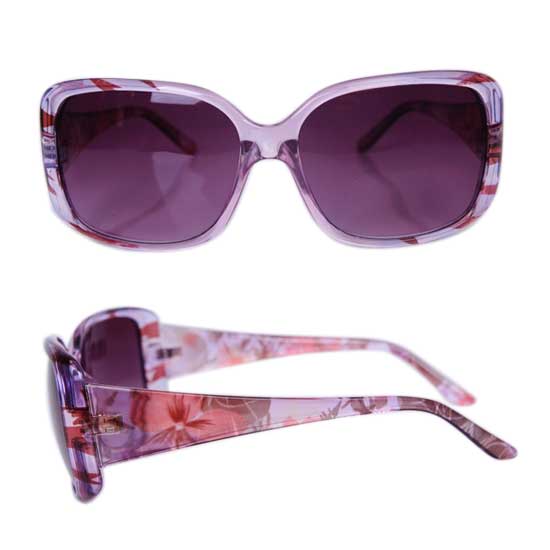 This pictured pair of sunglasses is designed for the fashionable women. The PC frame is adorned with chic and stylish floral patterns. The extra-large lenses are coated with a layer of scratch-resistant coating for enhanced beauty.