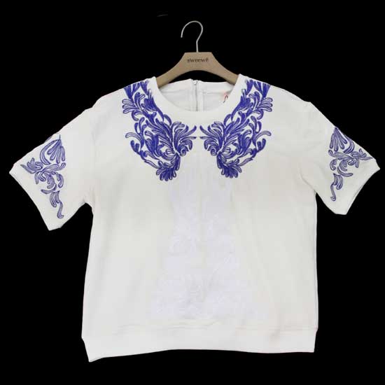 This is a women’s T-shirt with colored prints around the neck and sleeves for a sense of attractiveness. This eye-catching T-shirt features a round neckline and short sleeves. It is made of 65% polyester and 35% cotton for a comfortable touch.