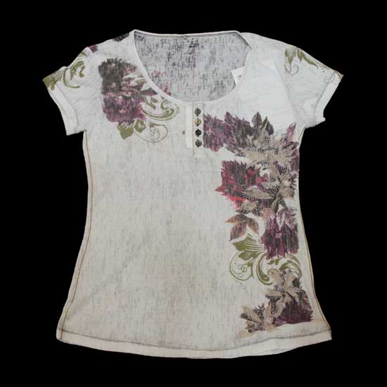 This women’s T-shirt is made of 100% cotton to ensure wearing comfortable. This short-sleeve T-shirt comes with colorful floral prints to catch your attention easily. The stylish sequins are added for extra style.