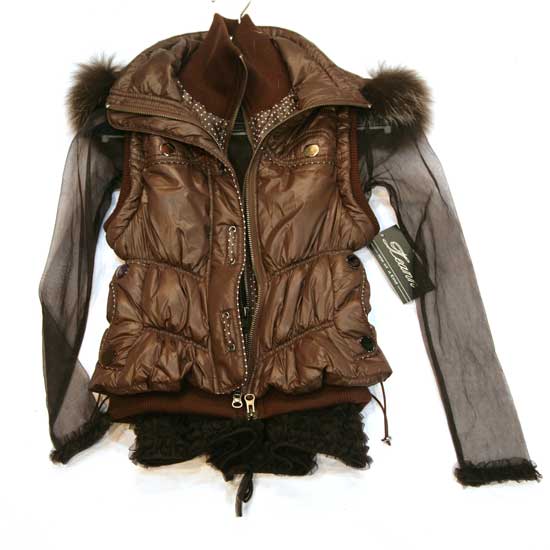 Featured here is a vest designed for stylish women. The vest is available in a classy bronze tone with a polka-dot interior. The vest is great to pair with a wide variety of tops.