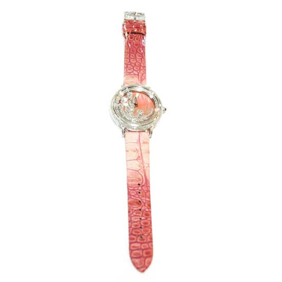 This is a women’s quartz analog watch that grabs people's attention with its elegant and dainty appearance. The dazzling diamonds are crafted onto the watch bezel and dial for an exquisite touch. This attractive watch is finished with a pink-colored leather watch strap.
