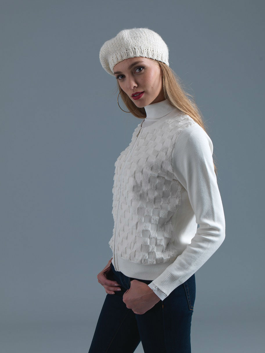 Getting a minimalist wardrobe is oh so easy with this soft sweater in universally flattering ivory tone. Manufactured with a blend of a viscose and nylon, this soft and resilient pullover boasts an easy-to-care construction while keeping you toasty from inside out in bitter cold.