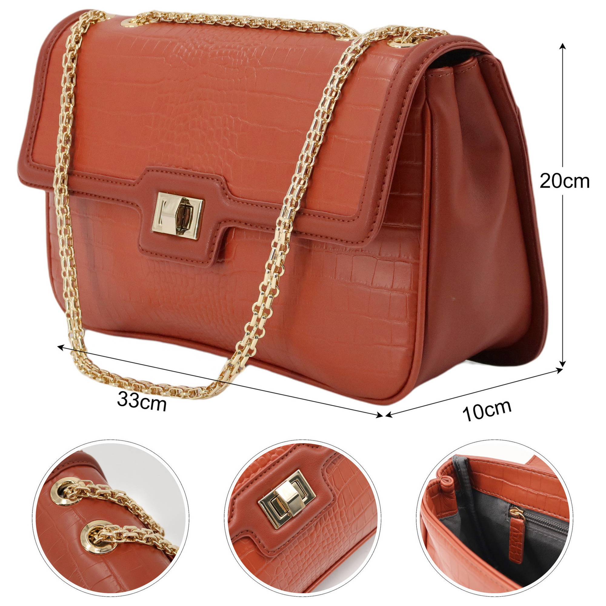 1. Material: PU Leather3. Size: 33cm x 20cm x 10cm4. Shoulder Strap Length: 48cm5. Weight: about 0.57kg