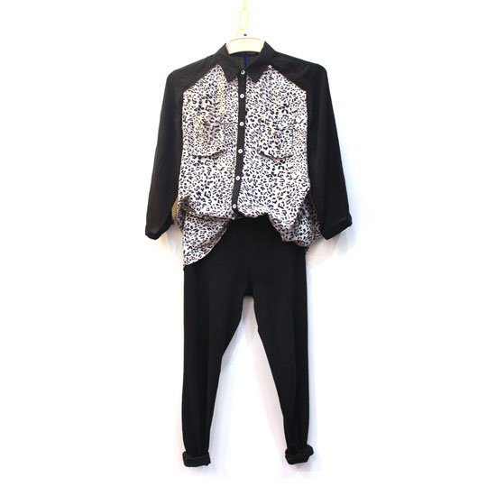 This is a set of womenswear made of soft chiffon. It features a printed shirt and a pair of pants. The shirt comes with eye-catching tiger patterns for added uniqueness.