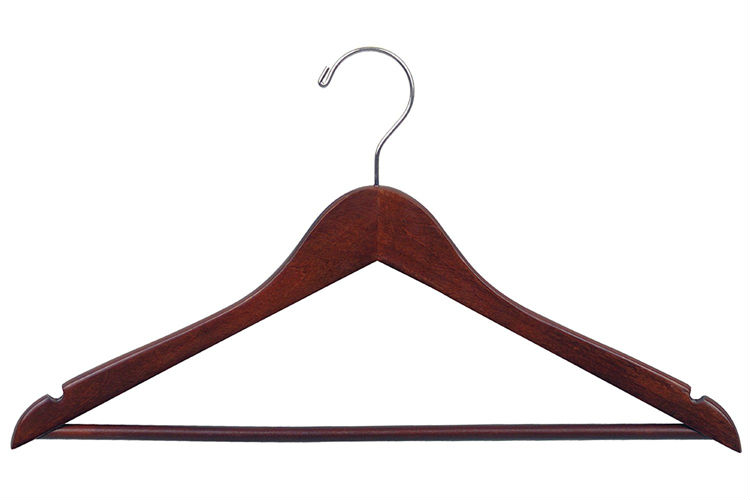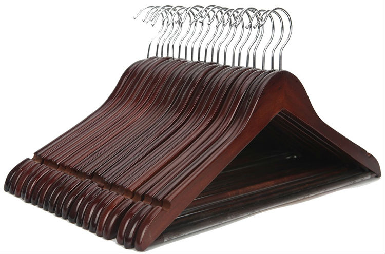 Cheap natural color lotus maple wood clothes hanger with lock pant bar