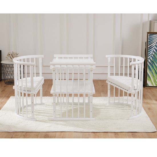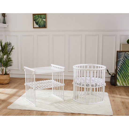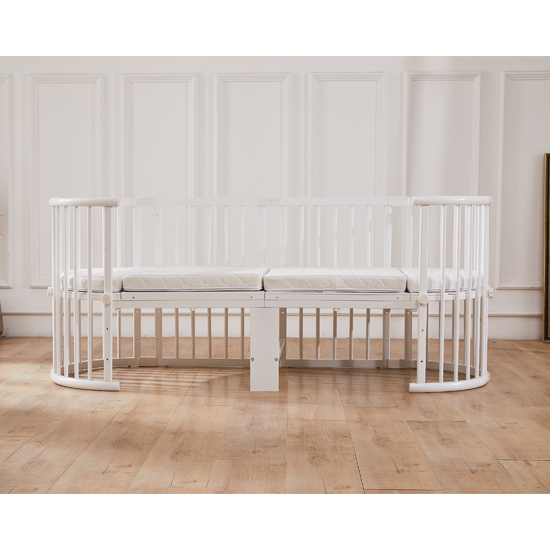 Made from solid wood and free of harmful substances, this quality crib is meticulously designed to create a cozy and safe environment for the little one. With four stable wheels, the crib allows parents to conveniently move the crib from room to room.