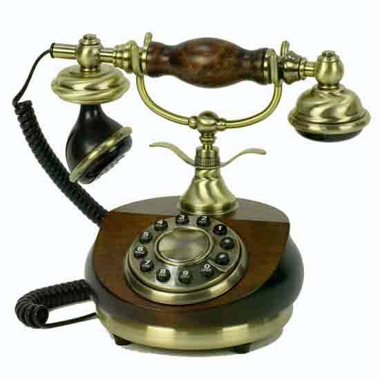 The classic wood desk telephone features touch-tone buttons in a circle to achieve an appearance of an old-fashioned rotary dial. It comes with a hand-carved wooden base and a handset. This classic desk telephone simply complements your home decor in a delightful way.