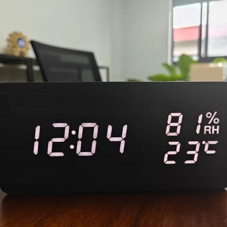 Clock function: clock, date, temperature, humidity, three sets alarm, sound control,