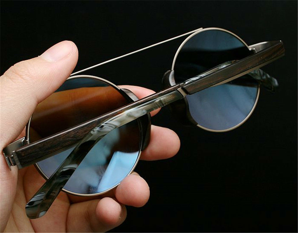 Step out cool and sleek with this retro-inspired round sunglasses in thumbs-up craftsmanship. The frame features straight temples covered with both wood grain and marble pattern for a classy touch, not to mention the wired round rims with unique high bridges in between.