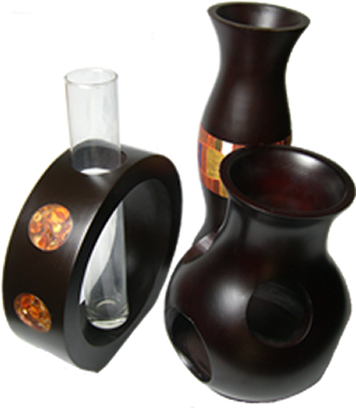 Hand carved vase made from mango wood and designed with fretwork or holes throughout the vases giving it a truly unique look.