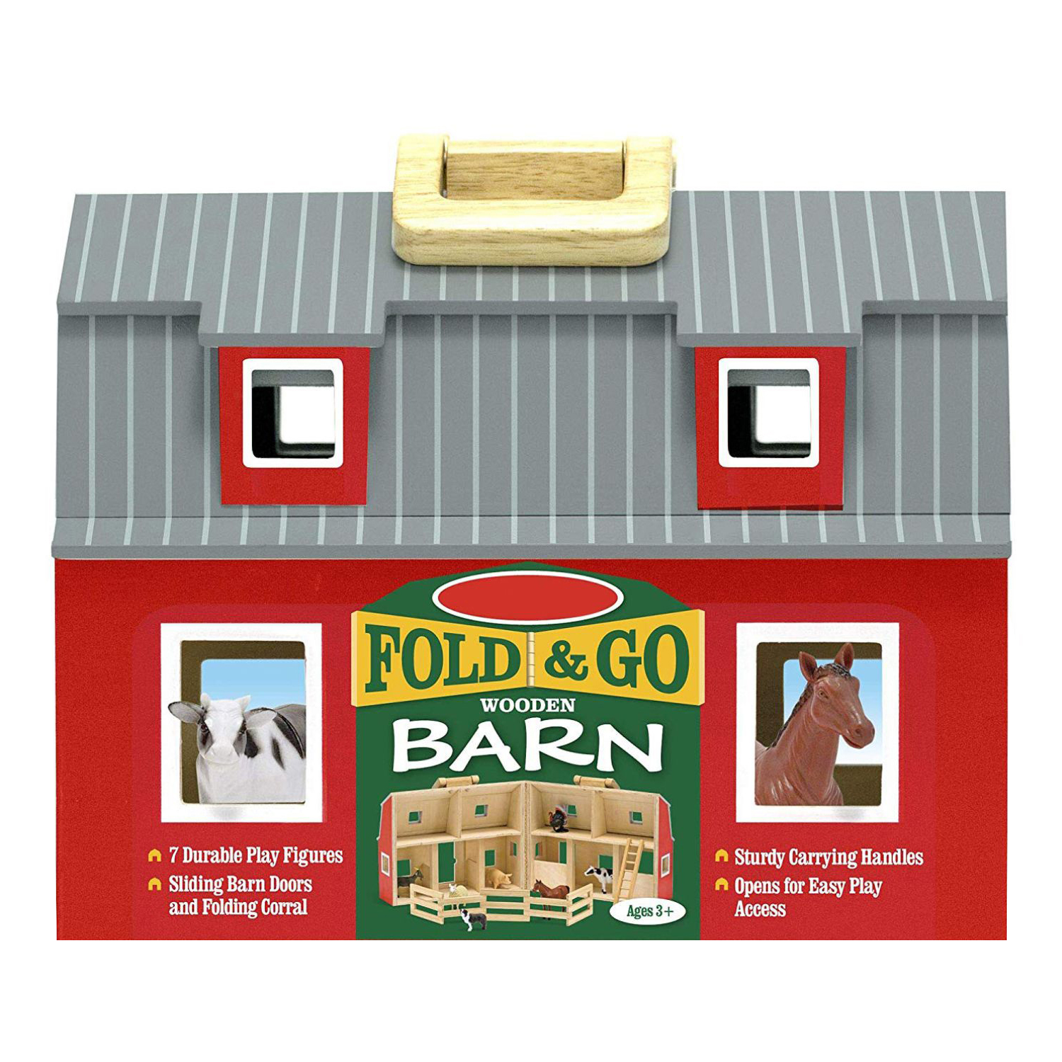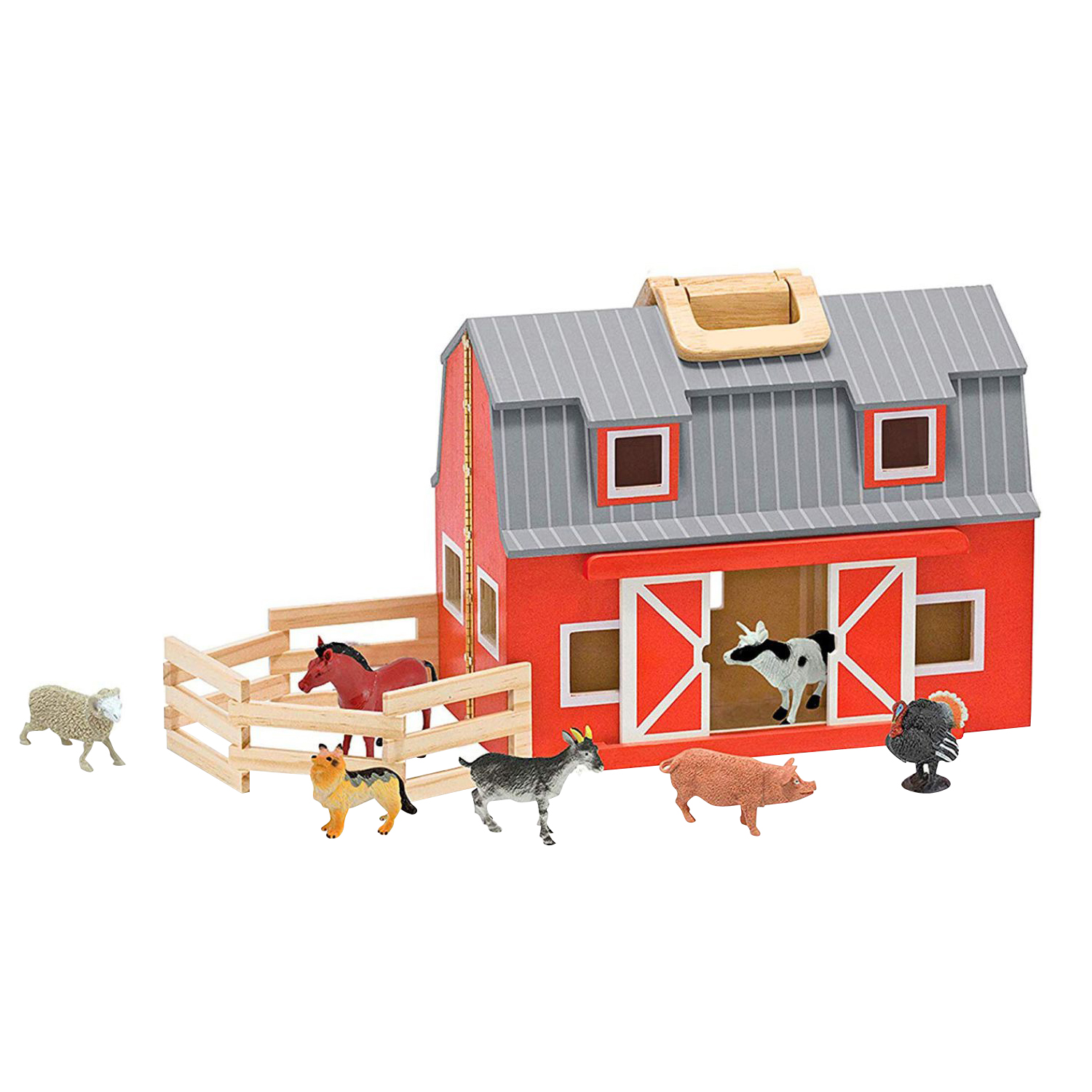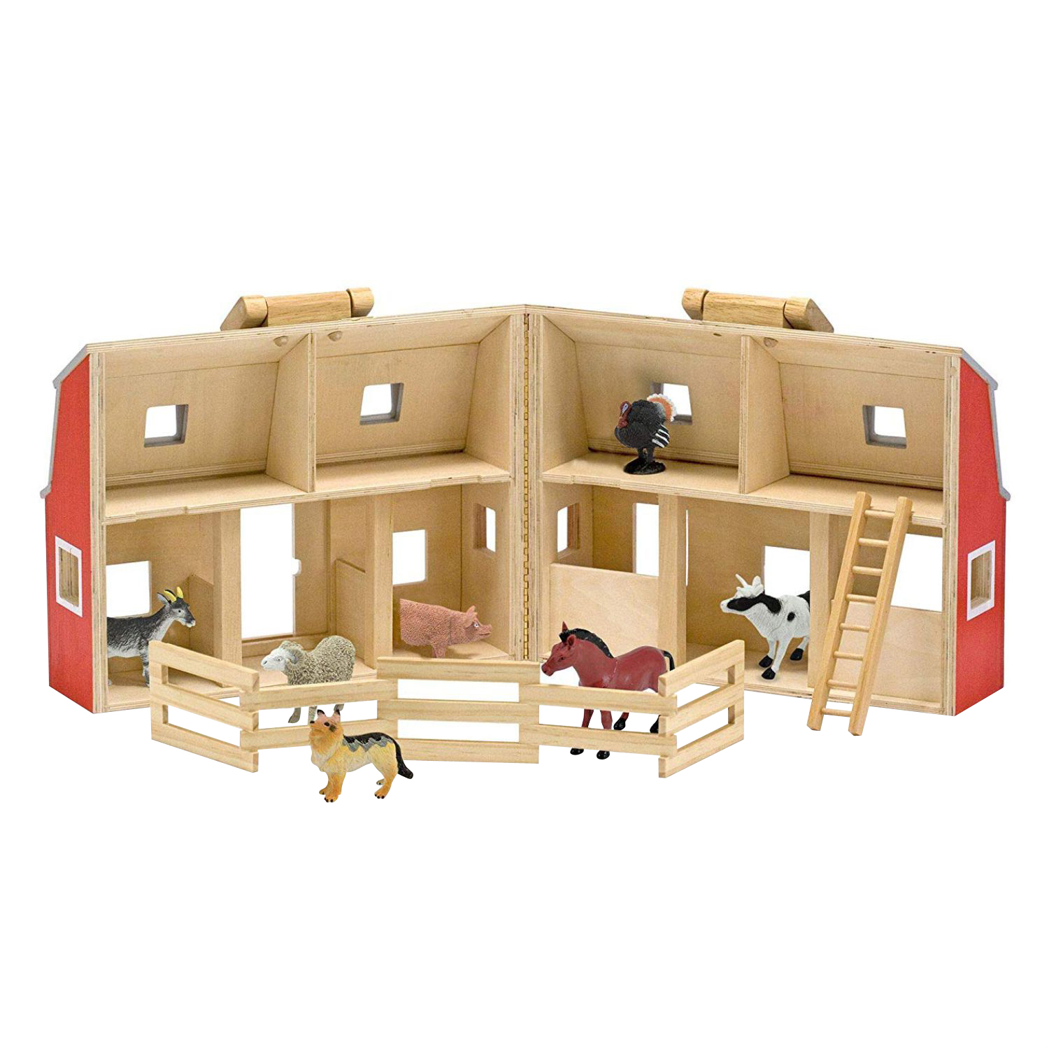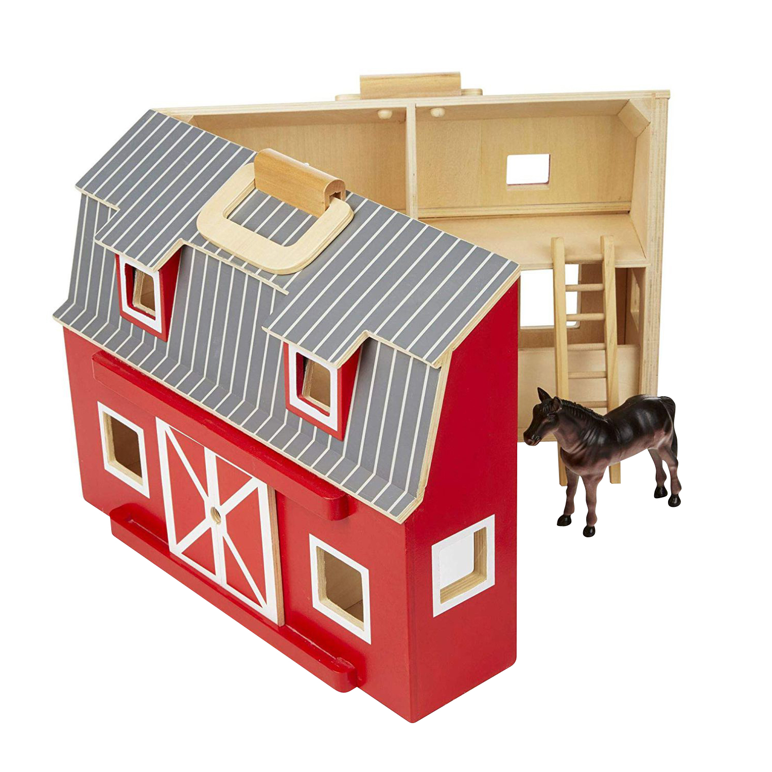 - The wooden barn can be wide open for easy play access.