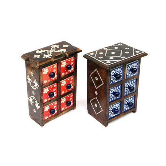 This is a high-quality cabinet with ceramic drawers. It boasts a robust wooden housing for a long service life. This wooden cabinet with delicate patterns is ideal for household use.