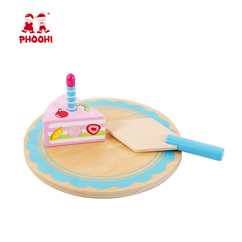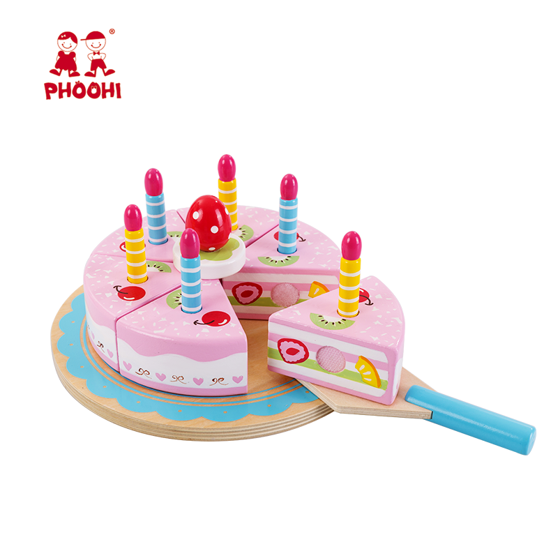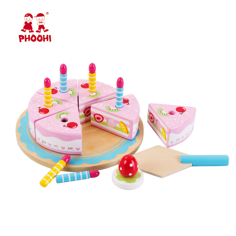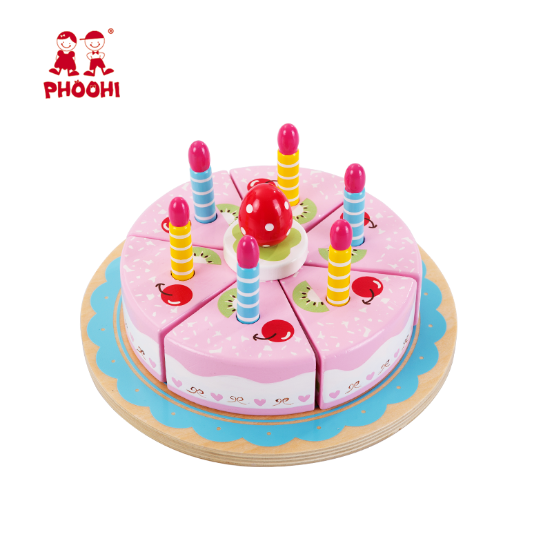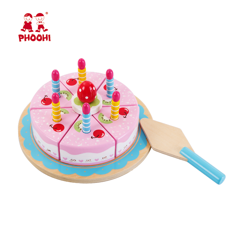 • New design children pretend play food cutting pink kids wooden cake toy with candles