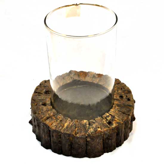 The candle holder has a glass top and a berk-wood bottom. The delicate craftsmanship gives it a polished finish. This candle holder makes a great household decorative item.