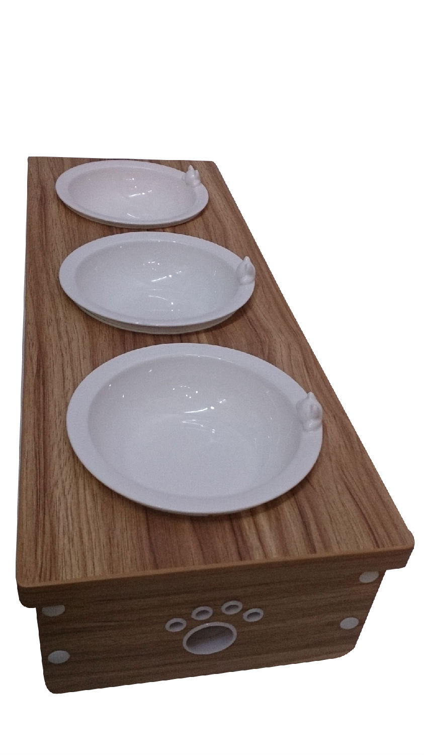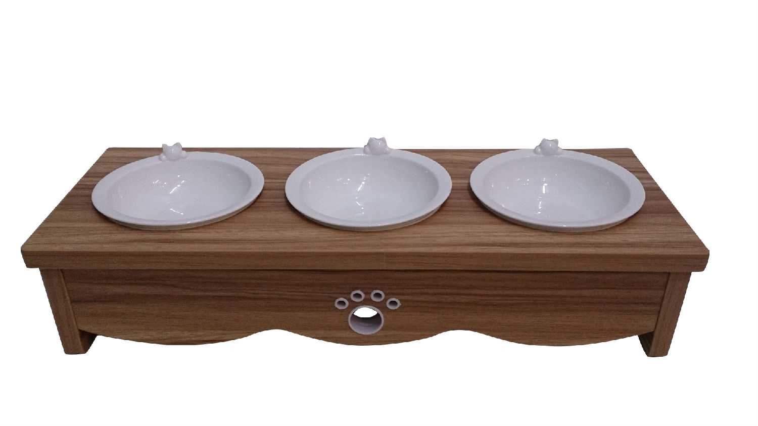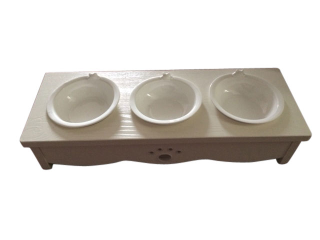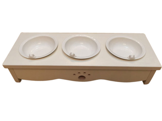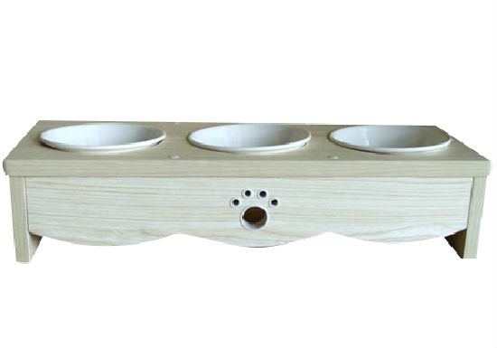 • Wooden cat dining table (triple bowl)