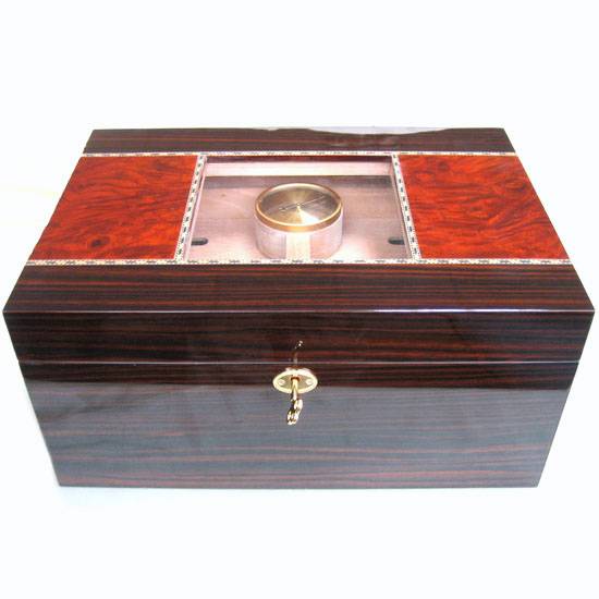 Keep your favorite cigars in the featured cigar box. The veins on the wooden box make give it a classic style. The box comes with a high gloss finish and is a beautiful addition to your living room or study room.