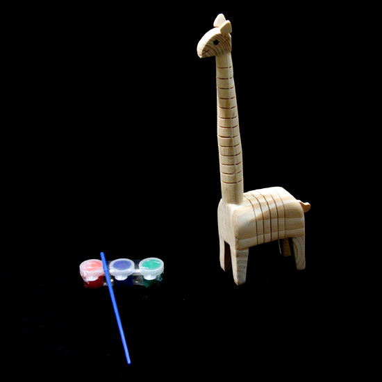 Showcased is a wooden craft with a paint brush and colors. The adorable giraffe design adds a touch of style. This toy painting set is great for promoting kids' IQ development.
