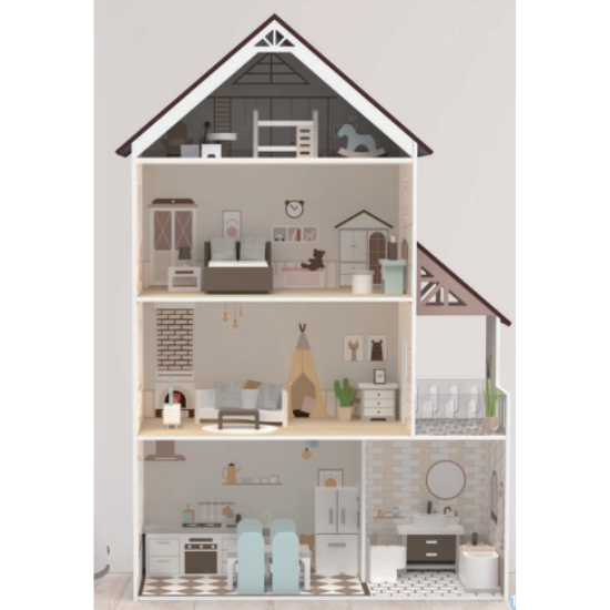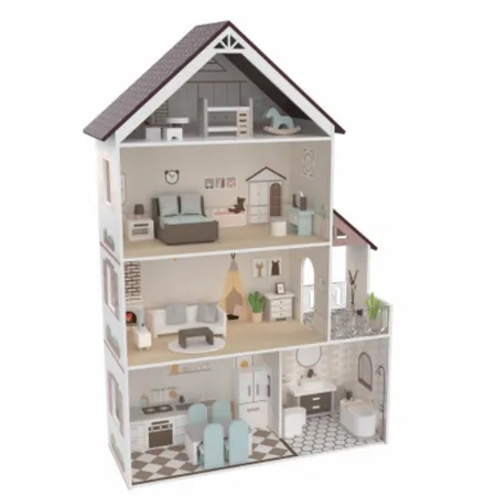 This wooden dollhouse combines classic design with realistic features, making it a charming addition to any playroom or collection. Constructed from durable materials, it features multiple rooms, detailed furnishings, and realistic architectural elements that inspire imaginative play. The open-front design allows easy access for arranging furniture and dolls, fostering creativity and role-playing. Its robust construction ensures long-lasting enjoyment, making it an ideal companion for children.
