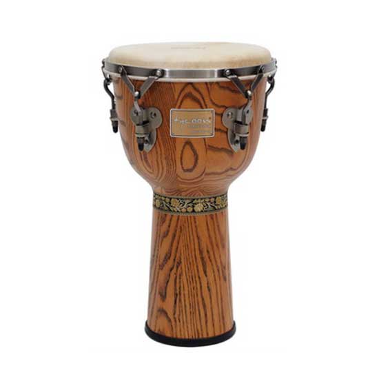 This dashing drum features a wooden grained body for an ethnic aura. The drum delivers a sophisticated tone with seemingly endless variations. This wooden drum simply makes a wonderful addition for percussionists to expand their musical creativity.