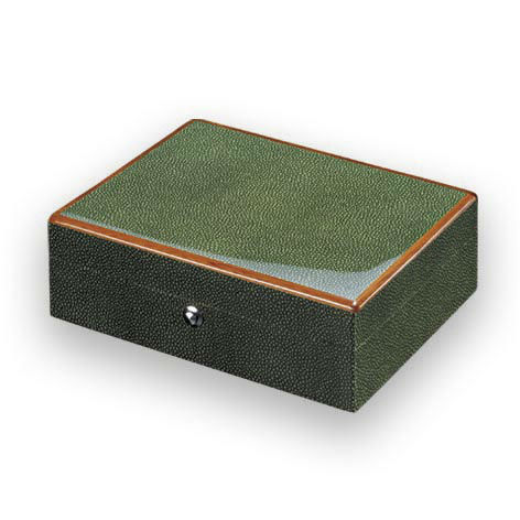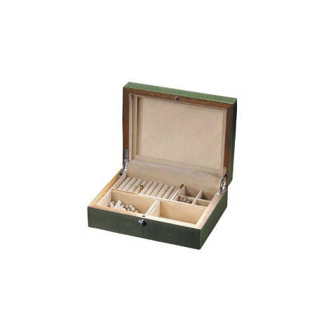 • This luxurious jewelry box is designed for storing your precious jewelry. This box comes with green shagreen pattern piano finish. Fitted with mirror and key lock.
