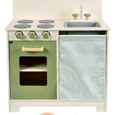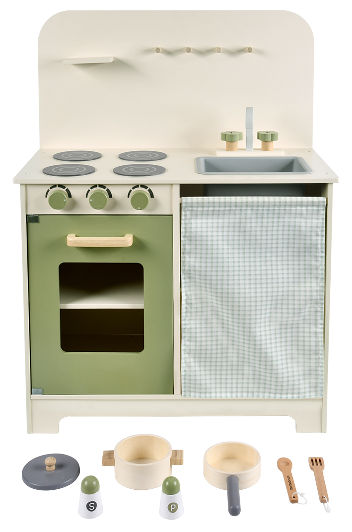 The set comes with a charming curtain. The curtain adds an extra layer of realism to the kitchen play experience. Kids can open and close it, just like in a real kitchen. It can also create a sense of privacy and make the play area feel more like a cozy little kitchen nook. Whether they want to pretend to be cooking a secret recipe or hosting a private dinner party, the curtain enhances their imaginative play.