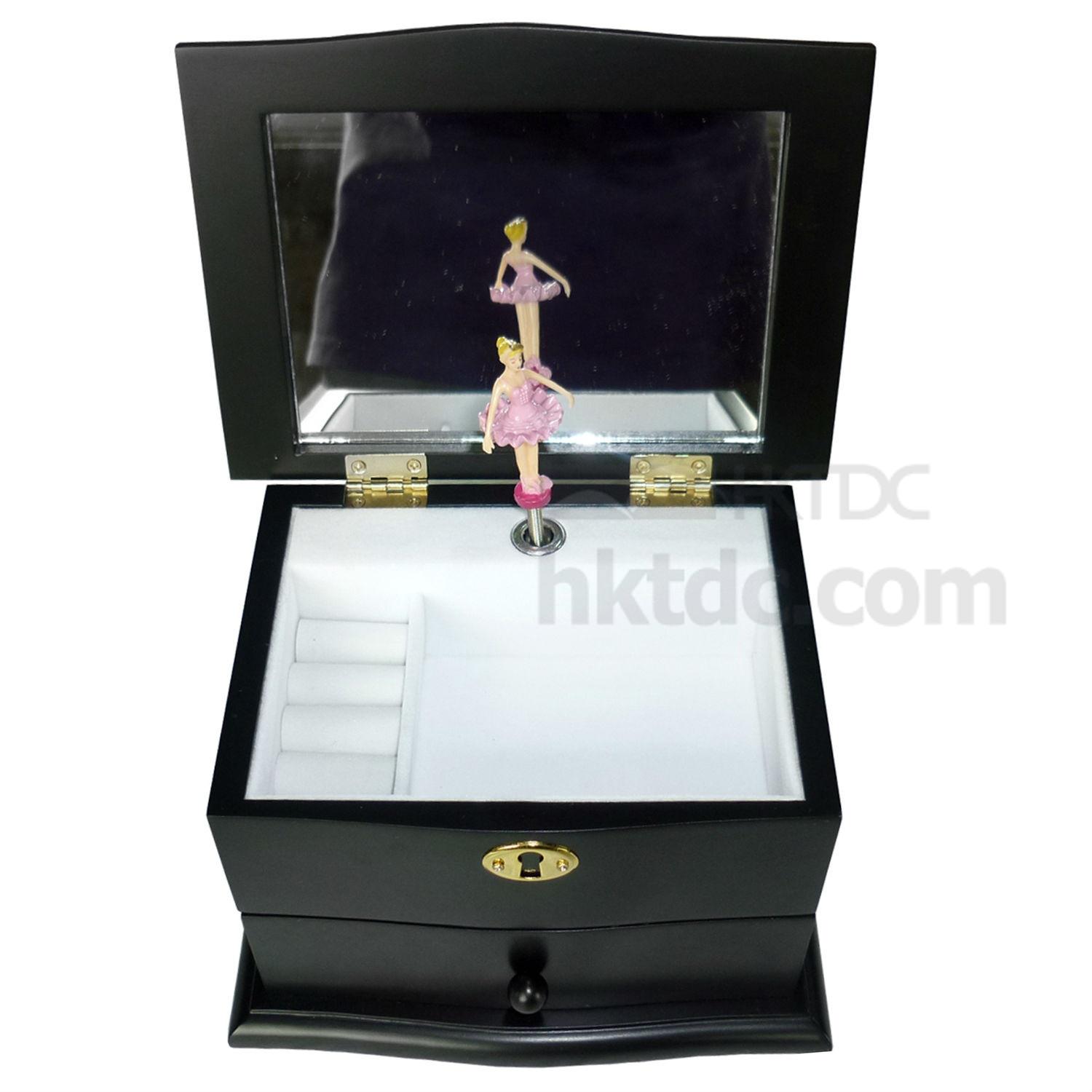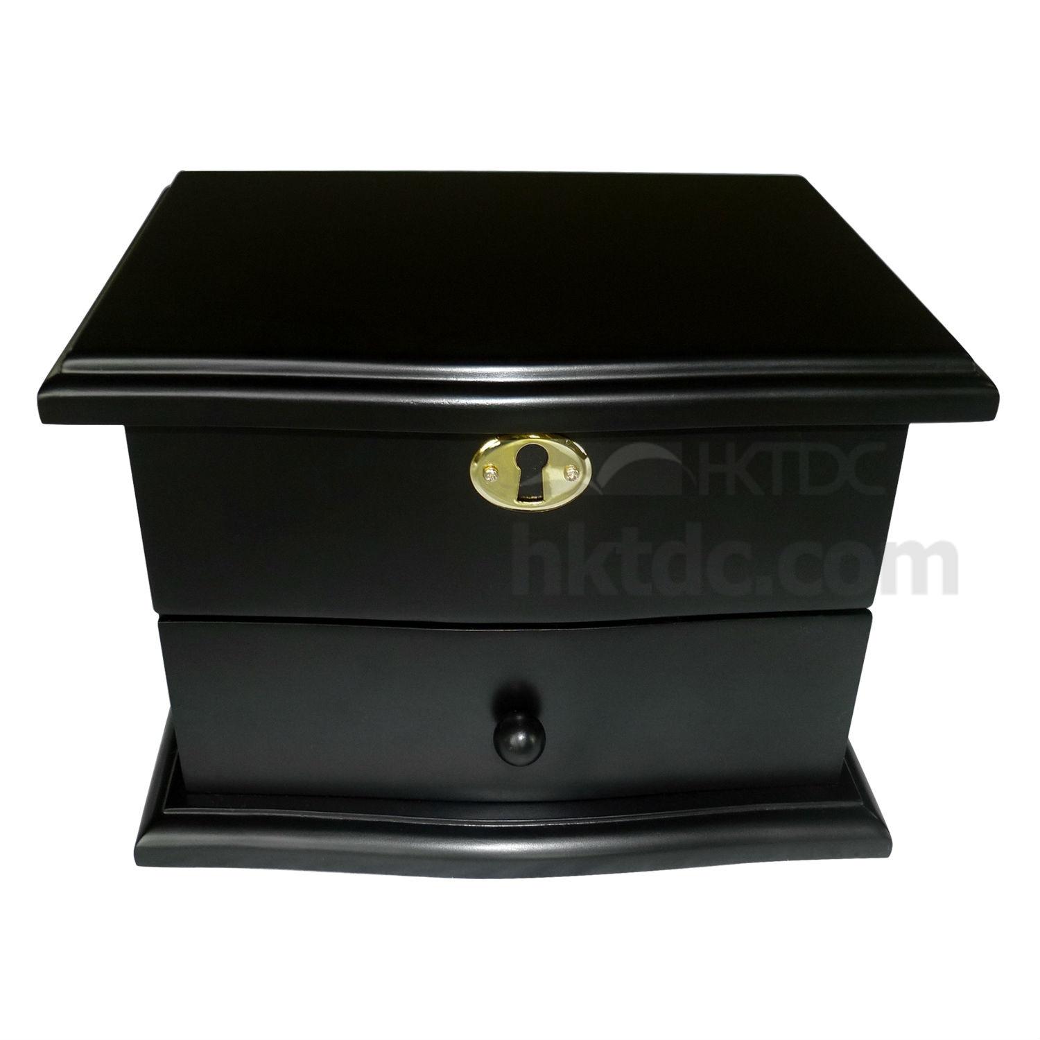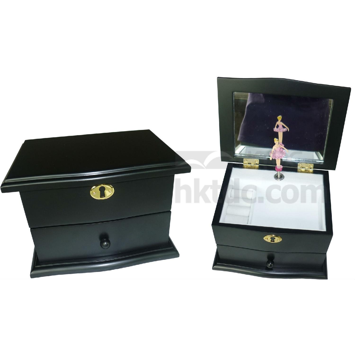 This wooden musical jewelry box is designed with both style and practicability in mind. It flaunts a nobly beautiful and elegantly gorgeous design with the pure black and white design. It comes with ring slots, a compartment and a drawer for organized storage. It is also fitted with a large mirror at the back of the lid for added functionality.