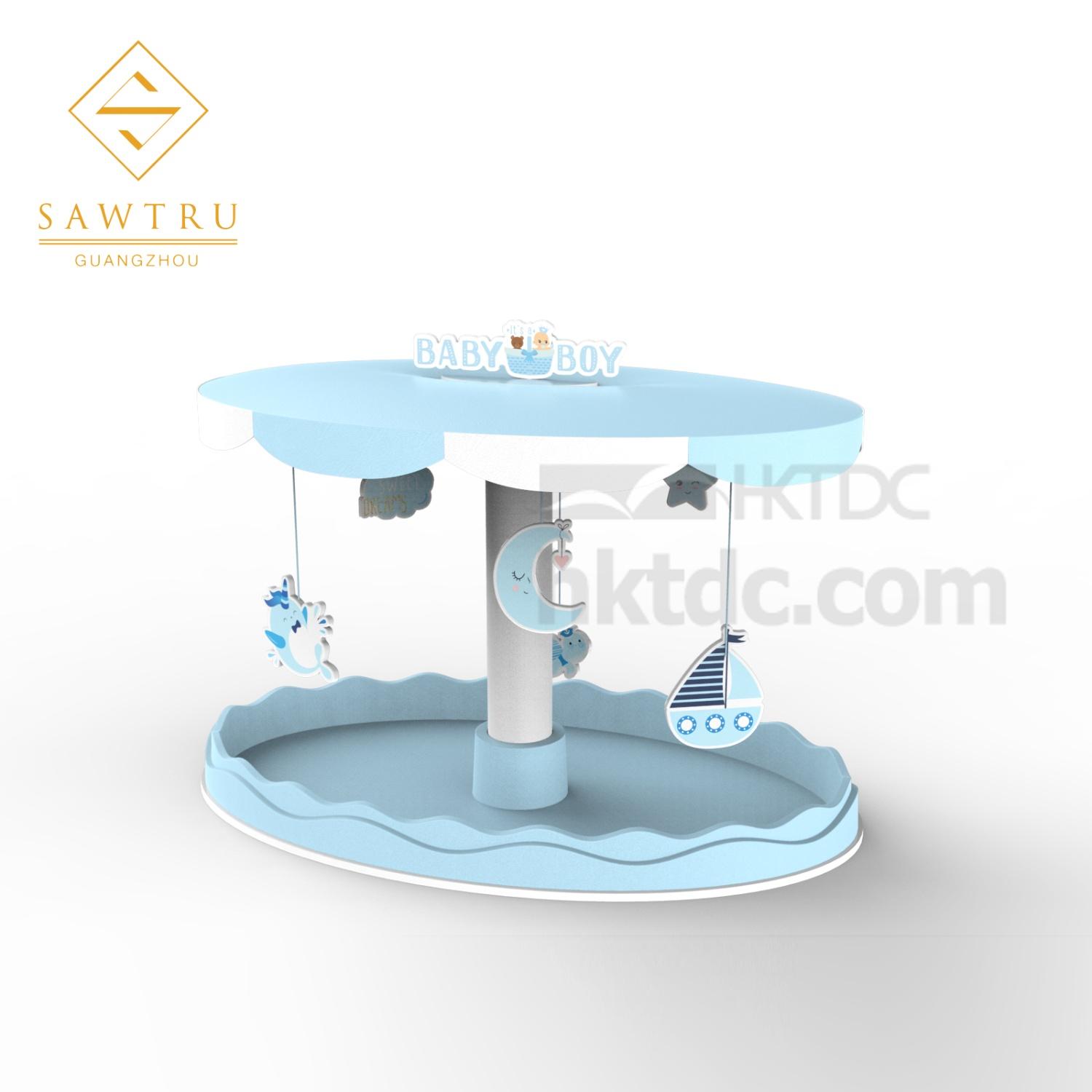 Blue custom wooden painting serving chocolate/candy storage tray for children