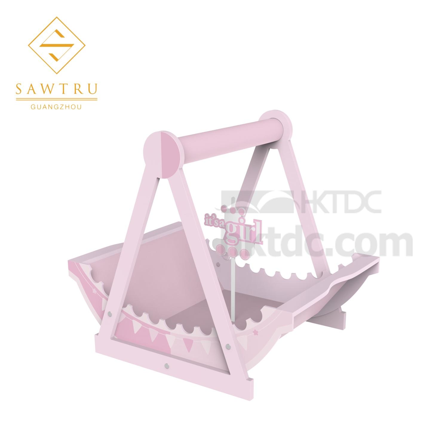 Pink custom wooden painting serving chocolate/candy storage tray for children with handle