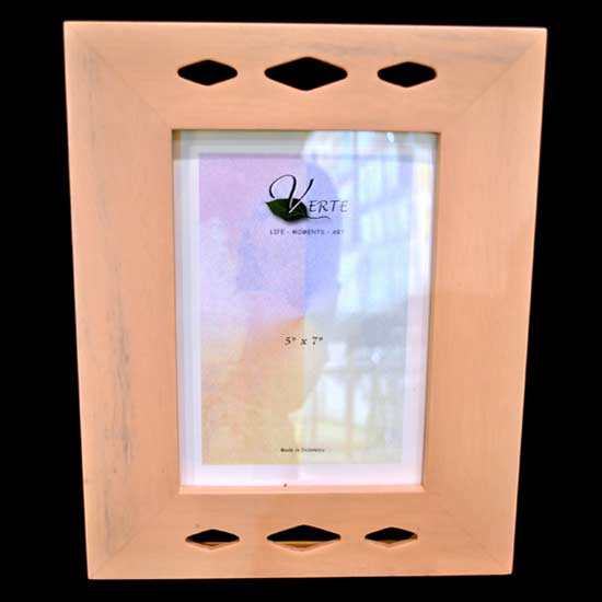 The rectangular-shaped photo frame flaunts a modest design in pink, which is complemented by simple yet decorative rhombus patterns for a sophisticated touch. The beautiful wooden construction brings you closer to the nature while providing a dependable medium for keeping your favorite photo. Freeze your memorable moment in time in this wooden photo frame.