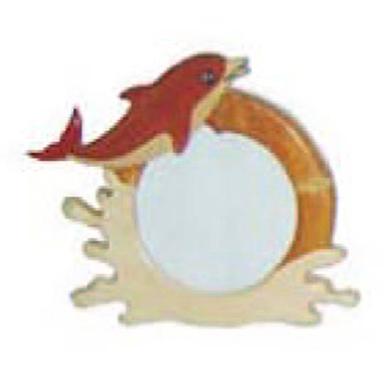This photo frame features a red dolphin jumping out of water. The red and wooden colour match makes it a beautiful decoration in bedroom or office. It is suitable for round pictures.