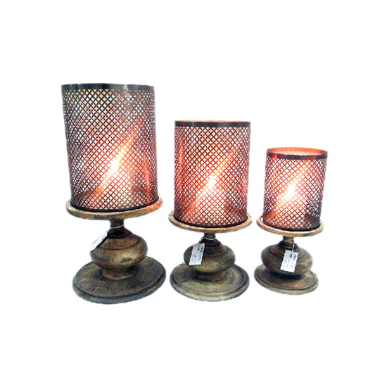 This wooden pillar holder is available in different sizes for your selection. Each piece is designed with a grill shade for added utility. The simple yet elegant design blends into any home decoration easily.
