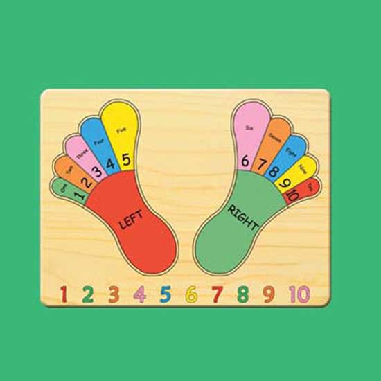 The wooden puzzle in this photo is specially designed to develop counting skills. The theme of feet and toes is visually appealing to young kids. Prepare a fun and educational preschool lesson in home with this wooden puzzle.