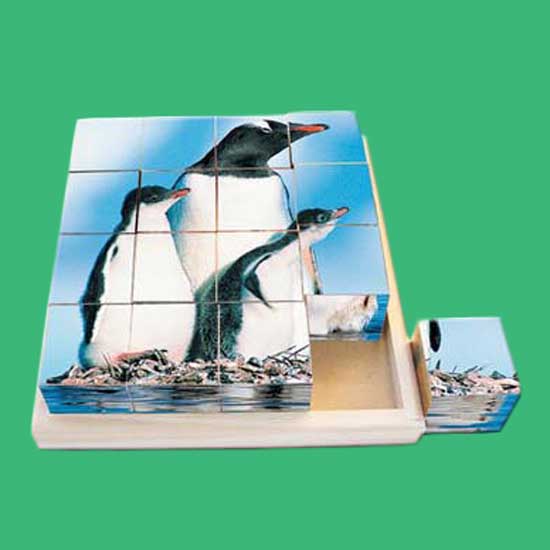 The highlighted wooden puzzle will show a photograph of lovely penguins after assembled. The quality wooden material guarantees lasting attractiveness. This wooden puzzle makes an ideal toy to develop young organizing skills.