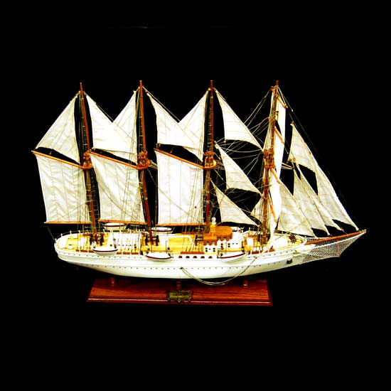 Displayed is a wooden ship model with a classic look that indicates authenticity. The flags and strings are made of good-quality fabric that ensures long-lasting beauty. This delicate wooden ship model is a good enhancement for your living room.